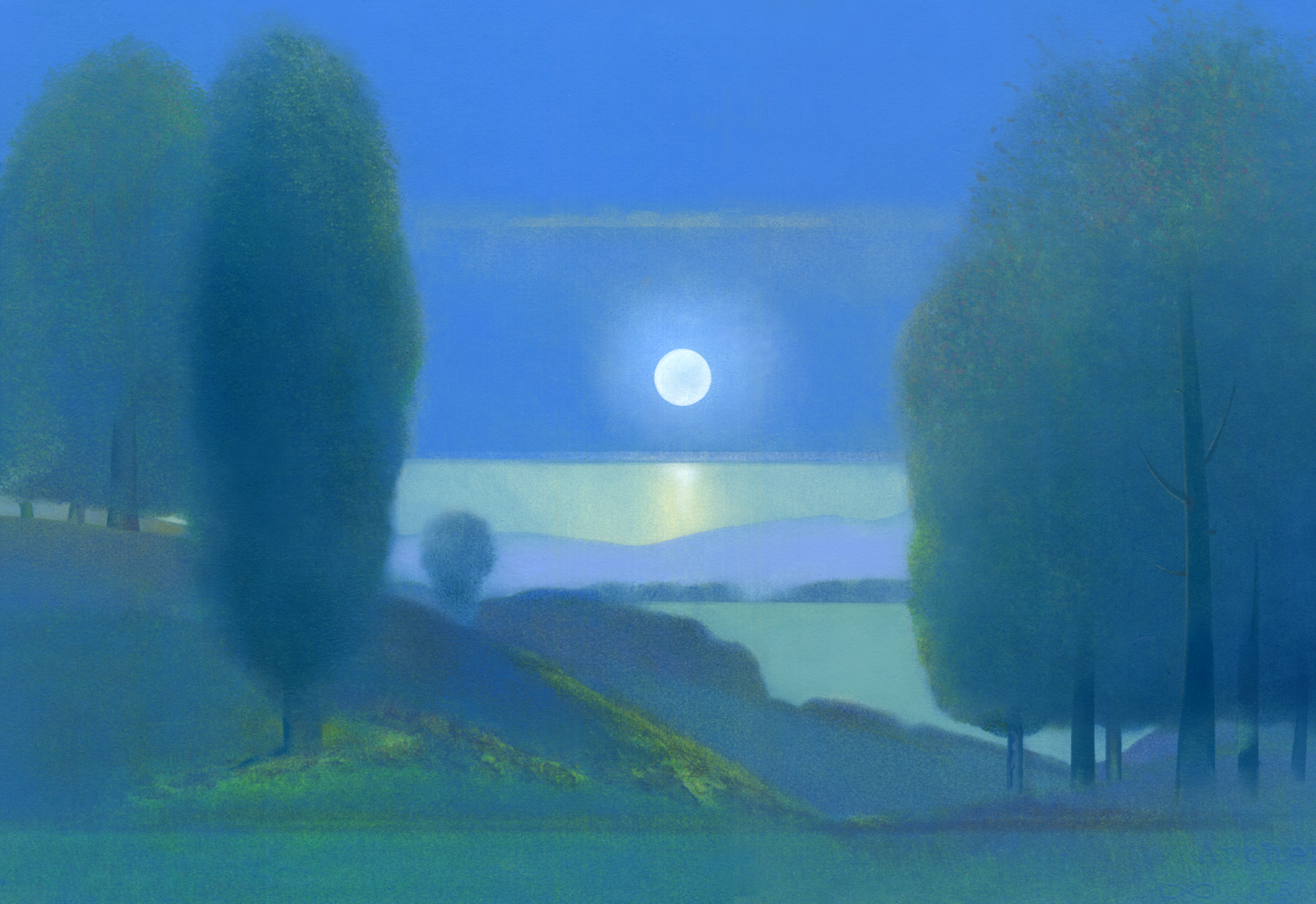 Silent Landscape Towards the Sea (2020) oil over rubbed and sized watercolour